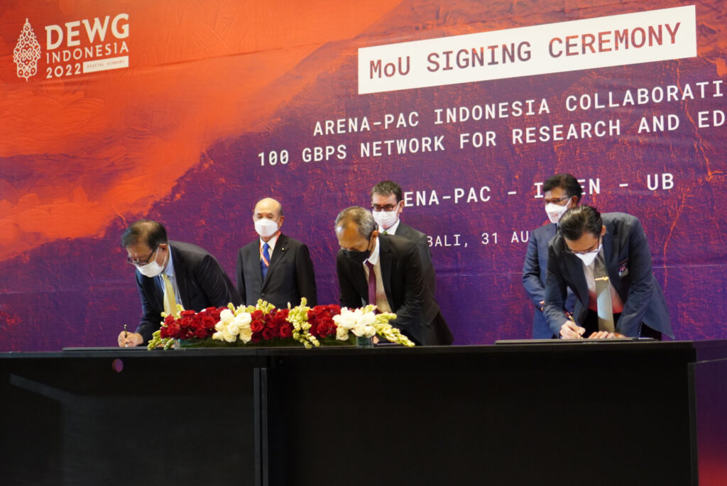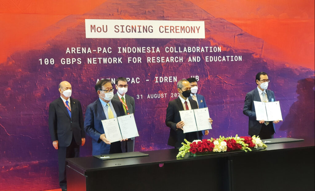 On August 31, 2022, Arterial Research and Educational Network in the Asia Pacific (ARENA-PAC), Universitas Brawijaya (UB), and Indonesia Research and Education Network (IDREN) signed an MoU agreeing to cooperate in the operation and development of a high-speed network, namely 100 Gbps, for research and education activities.